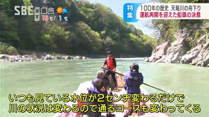■南島さん「いつもの水位が2センチ変わるだけで 川の状況は変わるので通るコースも変わってくる 安全のために毎回川を見て確認している」