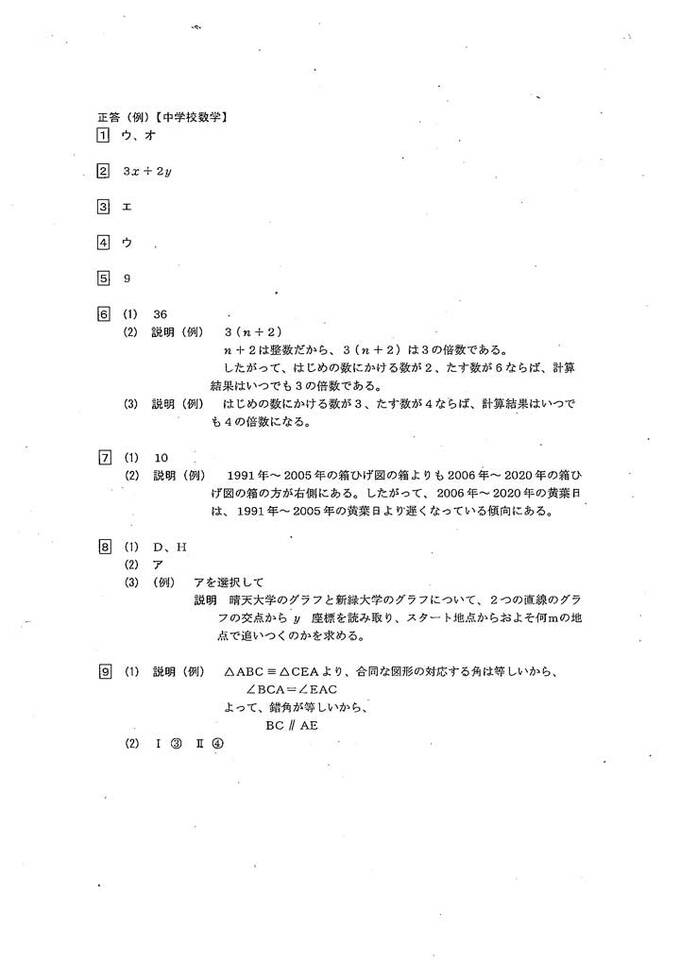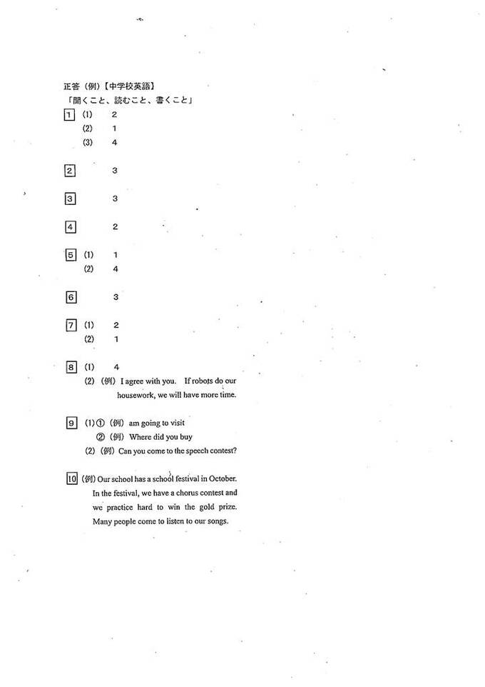 「全国学力・学習状況調査」が18日全国一斉に実施されました。科目は小学6年生が国語と算数、中学3年生は国語、数学、英語です。英語の調査は4年ぶりとなります。18日午後5時に、問題と正答例が公表されました。中学校3学年の正答例は以下のとおりです。