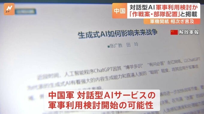 中国軍が対話型AIサービスの軍事利用について、検討を始めている可能性があることがわかりました。中国軍の機関紙「解放軍報」は18日、「対話型AIサービスは未来の戦争にどのような影響を与えるか」と題する論考を…