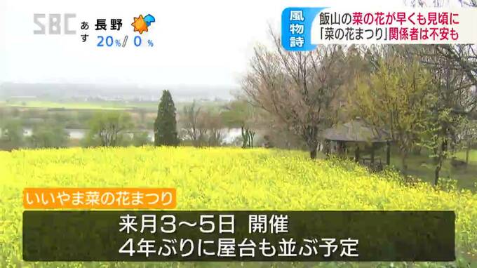 「いいやま菜の花まつり」は5月3日から5日まで開かれます。