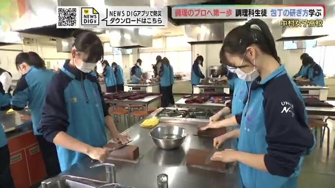 調理のプロへの一歩を踏み出します。山口県山口市の高校の調理科の生徒が、包丁の研ぎ方を学びました。包丁の研ぎ方を学んだのは、中村女子高校の調理科の1年生およそ30人です。木村那津美アナウンサー「包丁の歴…