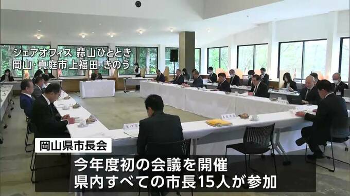県内15市による「岡山県市長会議」がきのう(18日)真庭市で行われ、国に物価高騰対策などを求める緊急決議を採択しました。5月1日、蒜山にオープンするシェアオフィスを会場に、本年度初となる市長会議が開かれ、…