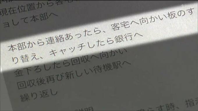 「本部から連絡があったら客宅へ向かい、板のすり替え、キャッチしたら銀行へ」(特殊詐欺の犯行マニュアルより)