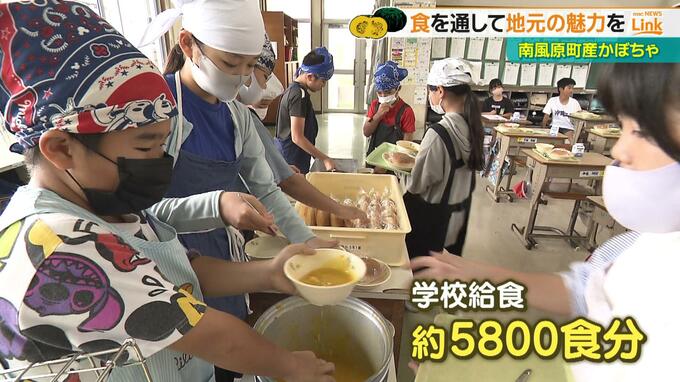 ことしは200キロの南風原町産かぼちゃが寄贈され、町内の給食でおよそ5800食が用意されました。