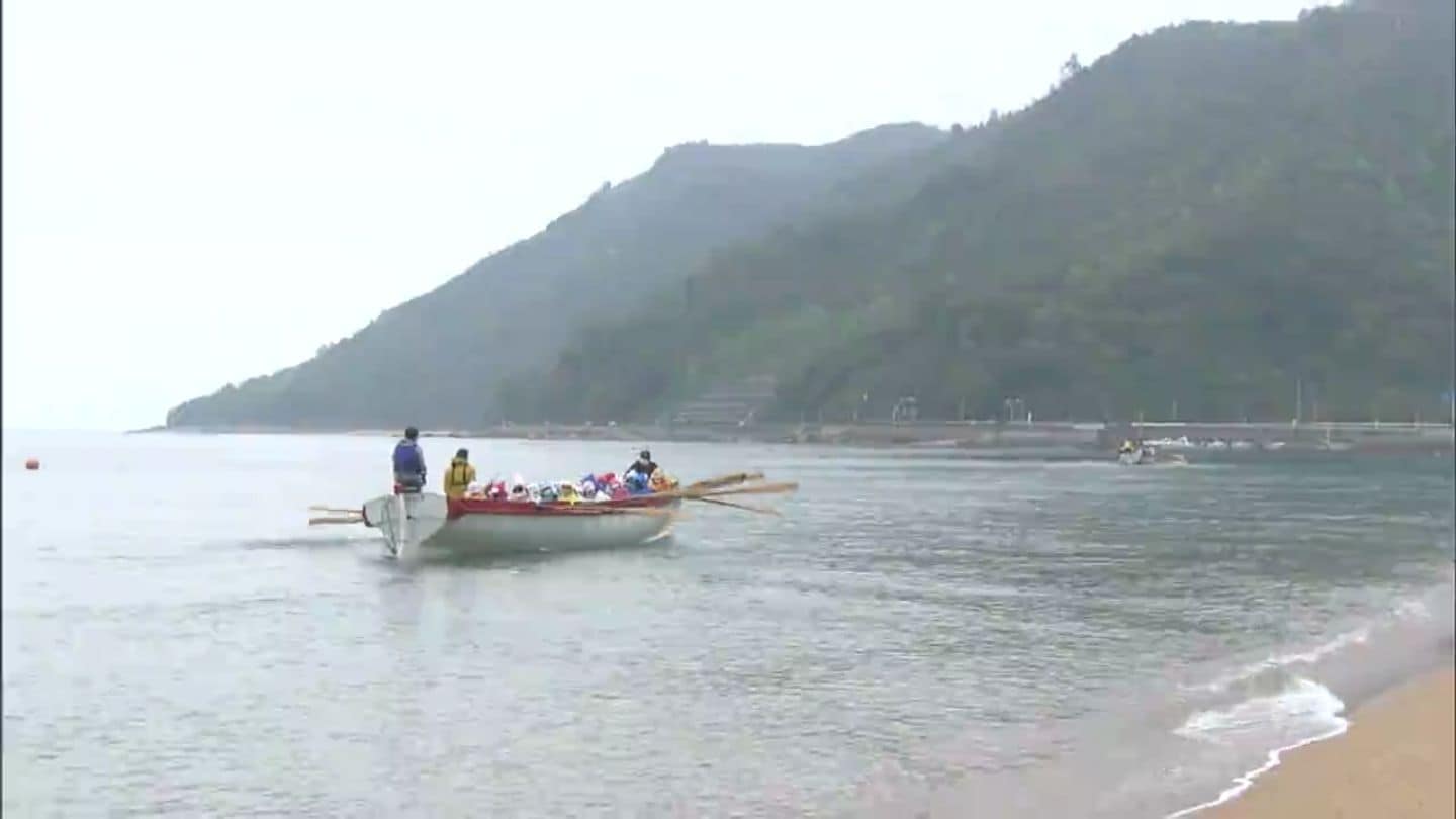 38人の児童が押すのは、全長9メートル・重さ1.5トンの手漕ぎのボートです。
