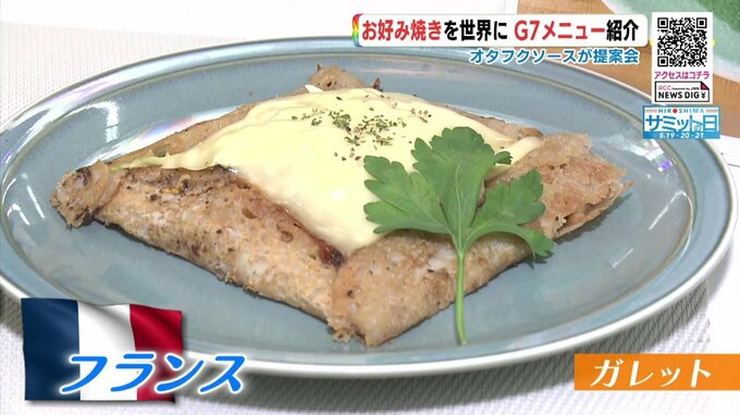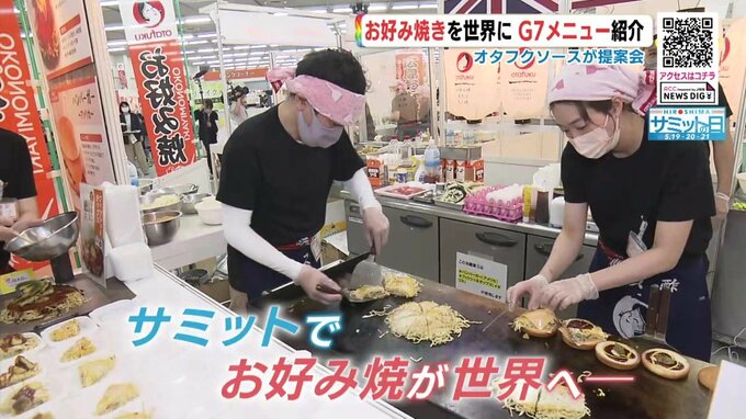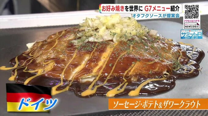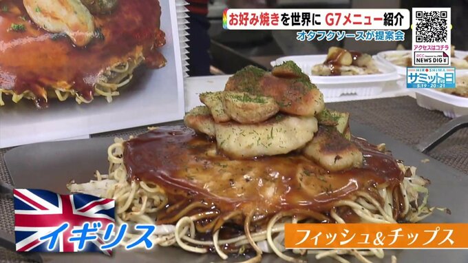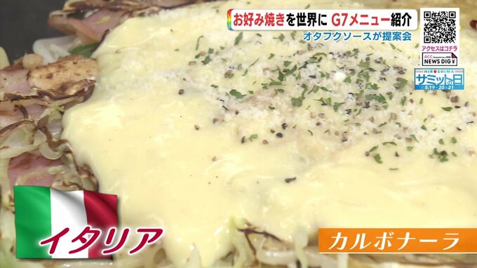 新しい鉄板メニューを紹介するオタフクソース恒例の「お好み焼き提案会」でもG7広島サミットに向けて国際色豊かなメニューが並びました。
