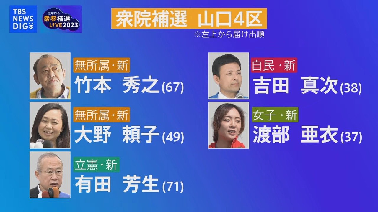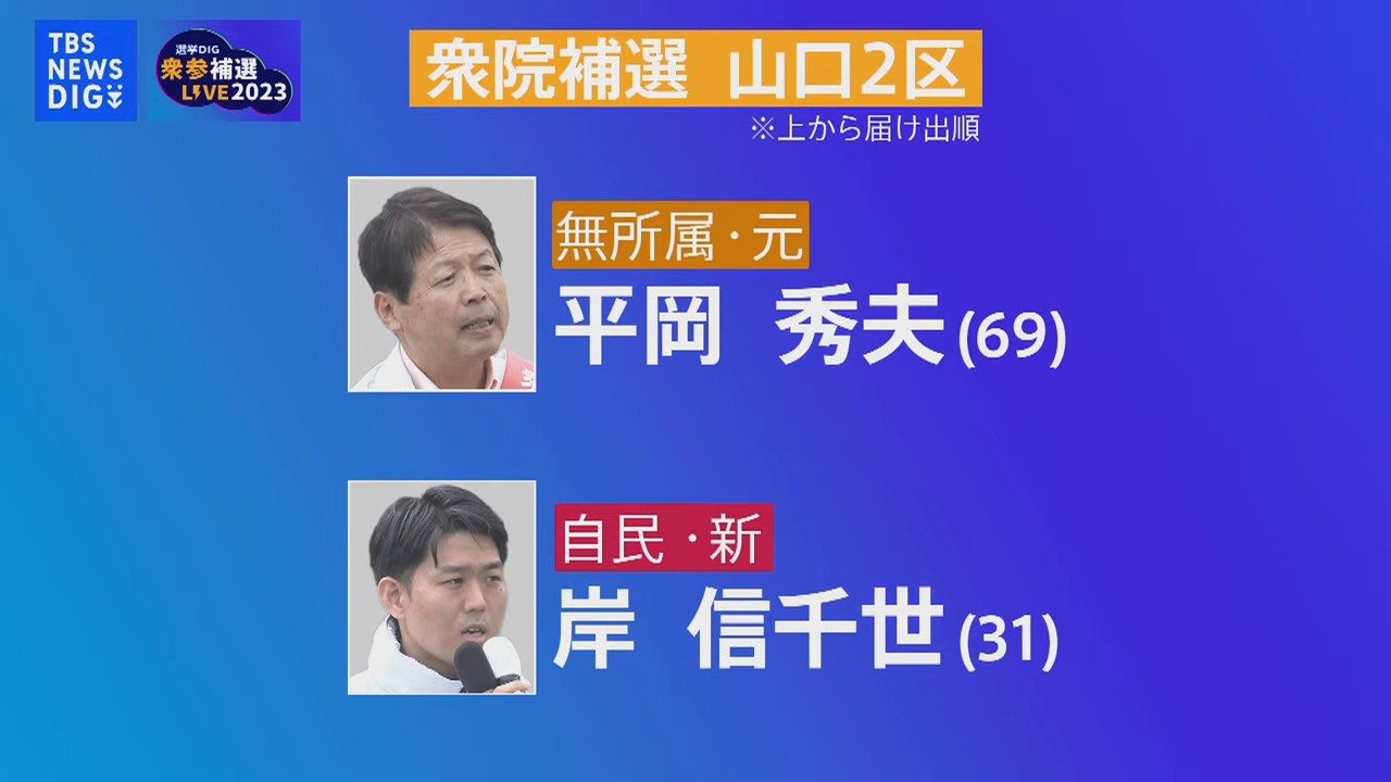安倍元総理の、後の議席を争う衆議院山口4区の補欠選挙は、JNNの出口調査や、これまでの取材などから、自民党公認の新人・吉田真次さん(38)の当選が確実となりました。