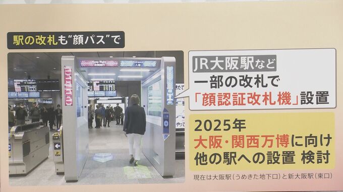 こちらはまだ実証実験段階ですが、JR大阪駅など一部の改札で顔認証の改札機を3月から設置し始めています。そして2025年の大阪・関西万博に向けて、他の駅への設置も検討中ということです。