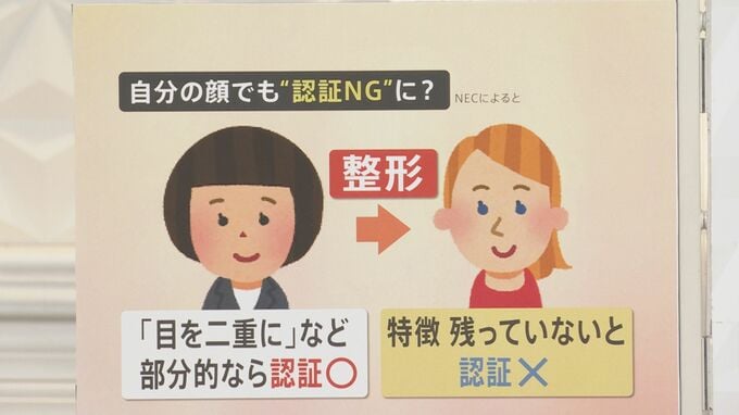 ちなみに、自分の顔でも顔認証がNGになる場合があります。目を二重にするなど、部分的な少しの整形なら認証できますが、目・鼻・口・骨格なども変えるような大きな整形ですと、特徴が残っていないので認証できません。この場合は新しくなった顔で登録し直す必要があります。