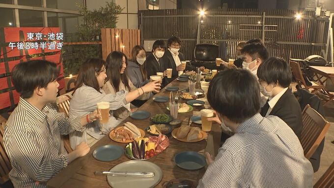 「日中、都内は汗ばむ陽気でしたが、こちらビアガーデン、みなさんお酒がすすんでいるようです」