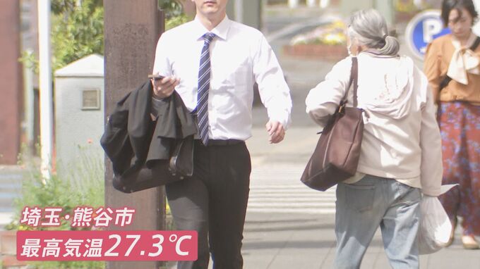 “日本一暑い街”として知られる埼玉県熊谷市では、27.3℃を記録。気温は6月下旬並みまで上がりました。