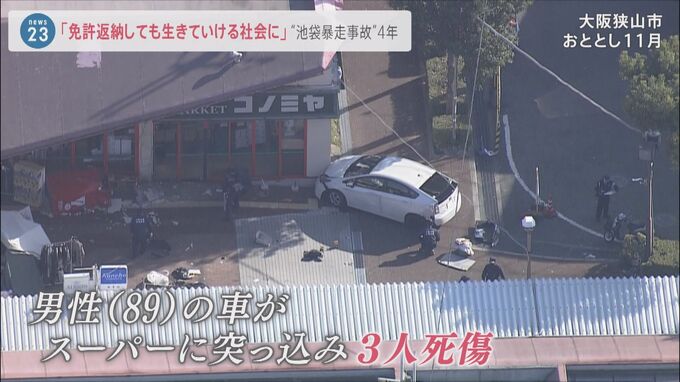 2021年の11月、大阪府で89歳の男性が運転する車がスーパーに突っ込み、3人が死傷。