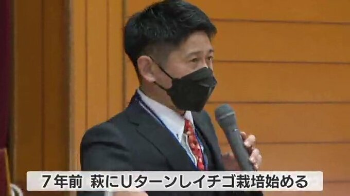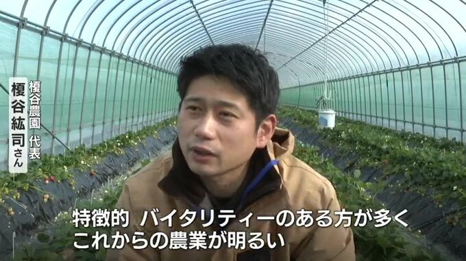 榎谷さんは合間をぬって中学校で職場体験も行っています。萩市生まれの榎谷さんは萩高校卒業後、岡山の専門学校で水産業を学び、山口市にあるクルマエビ養殖場に就職。父親のあとを継ぐため7年前に地元萩にUターンしてイチゴの栽培を始めました。