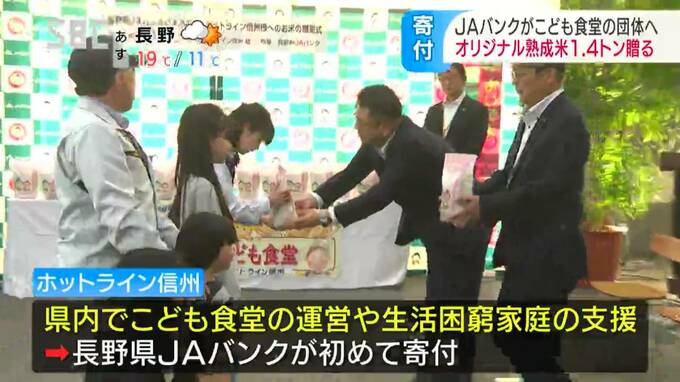 「ホットライン信州」は、県内でこども食堂の運営や、生活困窮家庭の支援などをしていて、県JAバンクが活動を支援しようと初めて寄付を行いました。