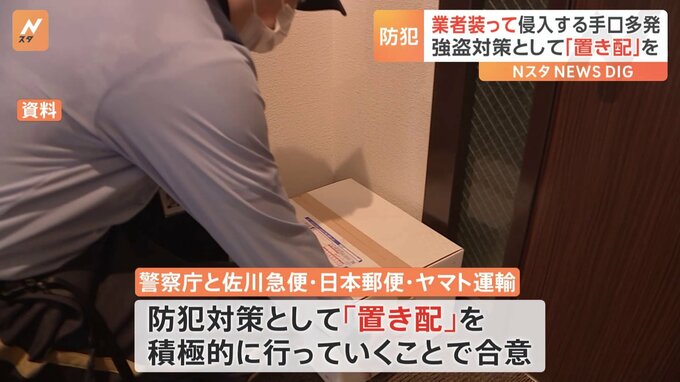 警察庁と大手宅配事業者3社はきょう、宅配業者を装った強盗事件をめぐる防犯対策の一環として、いわゆる「置き配」を積極的に行っていくことで合意しました。各地で相次いだ「闇バイト」で実行役を募る強盗などの…