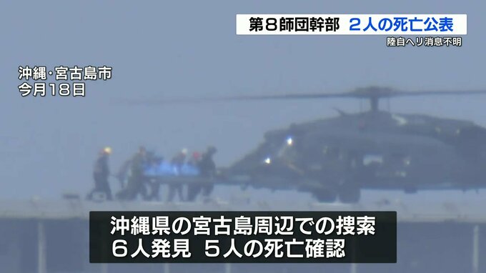 陸上自衛隊のヘリコプターが消息を絶った事故で、死亡が確認された5人のうち第8師団のナンバー3を含む2人の氏名が公表されました。