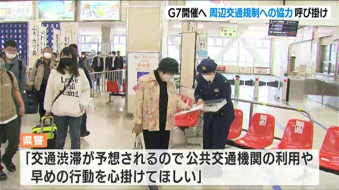 県警や第9管区海上保安本部などの職員が配ったのは、警備への協力が書かれたチラシ500枚です。