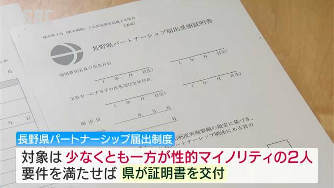 対象は少なくとも一方が性的マイノリティである2人で、成人であることなどの要件を満たせば、県が届け出を受領した証明書を交付。
