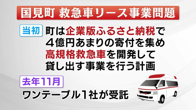 国見町は、当初「企業版ふるさと納税」で4億円あまりの寄付を集め、高度な救命措置が可能な「高規格救急車」を開発し、貸し出す事業を行う計画でした。