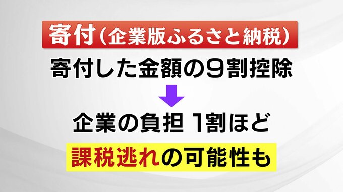 どういうことかといいますと、この寄付は「企業版ふるさと納税」で、寄付した金額の9割が控除の対象となります。実質的な企業の負担が1割ほどに軽減されるため、「課税逃れ」の可能性も指摘されています。