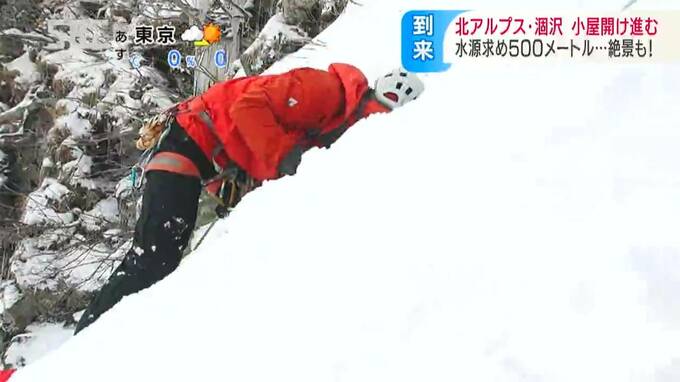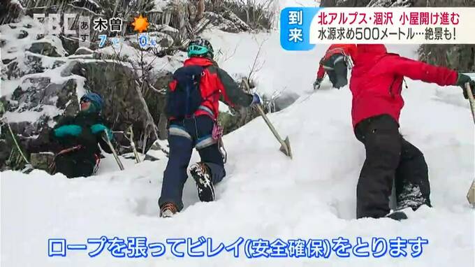 「ロープを張ってビレイ(安全確保)をとります。作業は安全確保をしてからです」