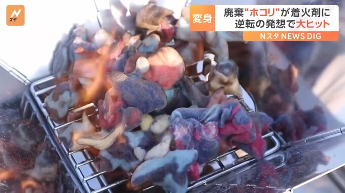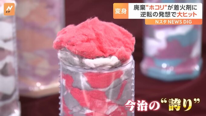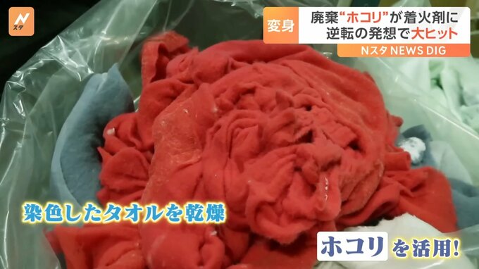 染色したタオルを乾燥させる際に出る“大量のホコリ”を活用!今では20倍の売れ行きを誇る厄介者が「着火剤」に大変身です。