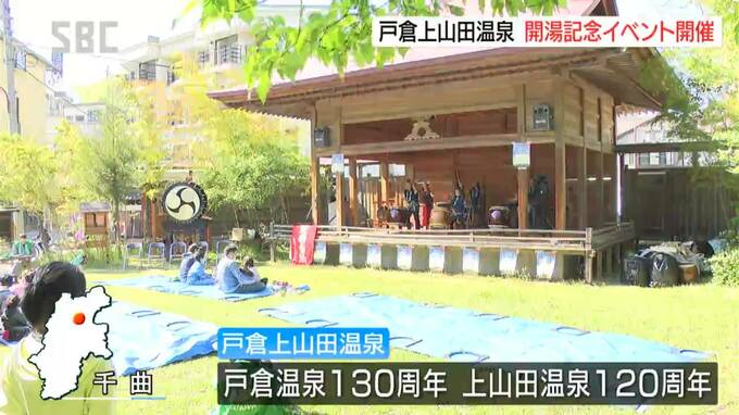 千曲市の戸倉上山田温泉の開湯を記念して、野外ライブなどのイベントが行われました。