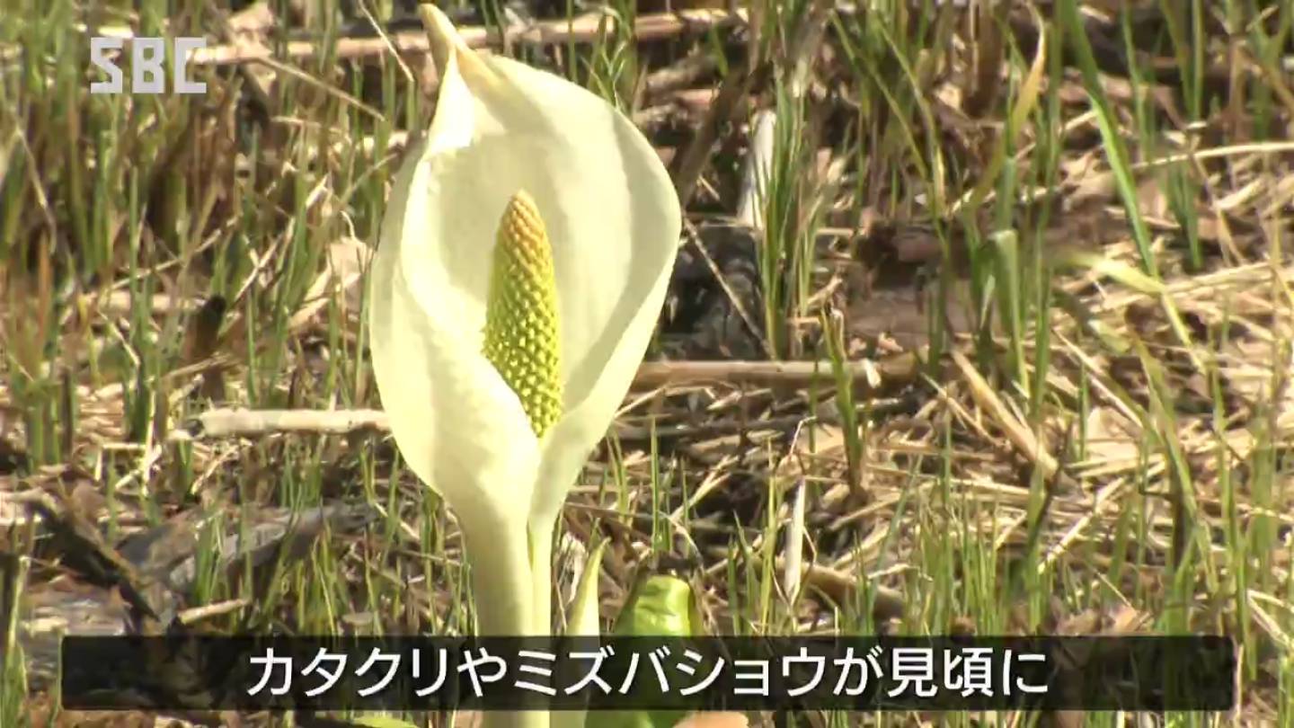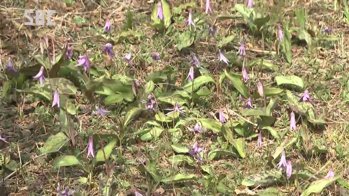 ゴンドラで上がることができ、淡い紫色のカタクリやミズバショウが、例年より早く見頃を迎えています。