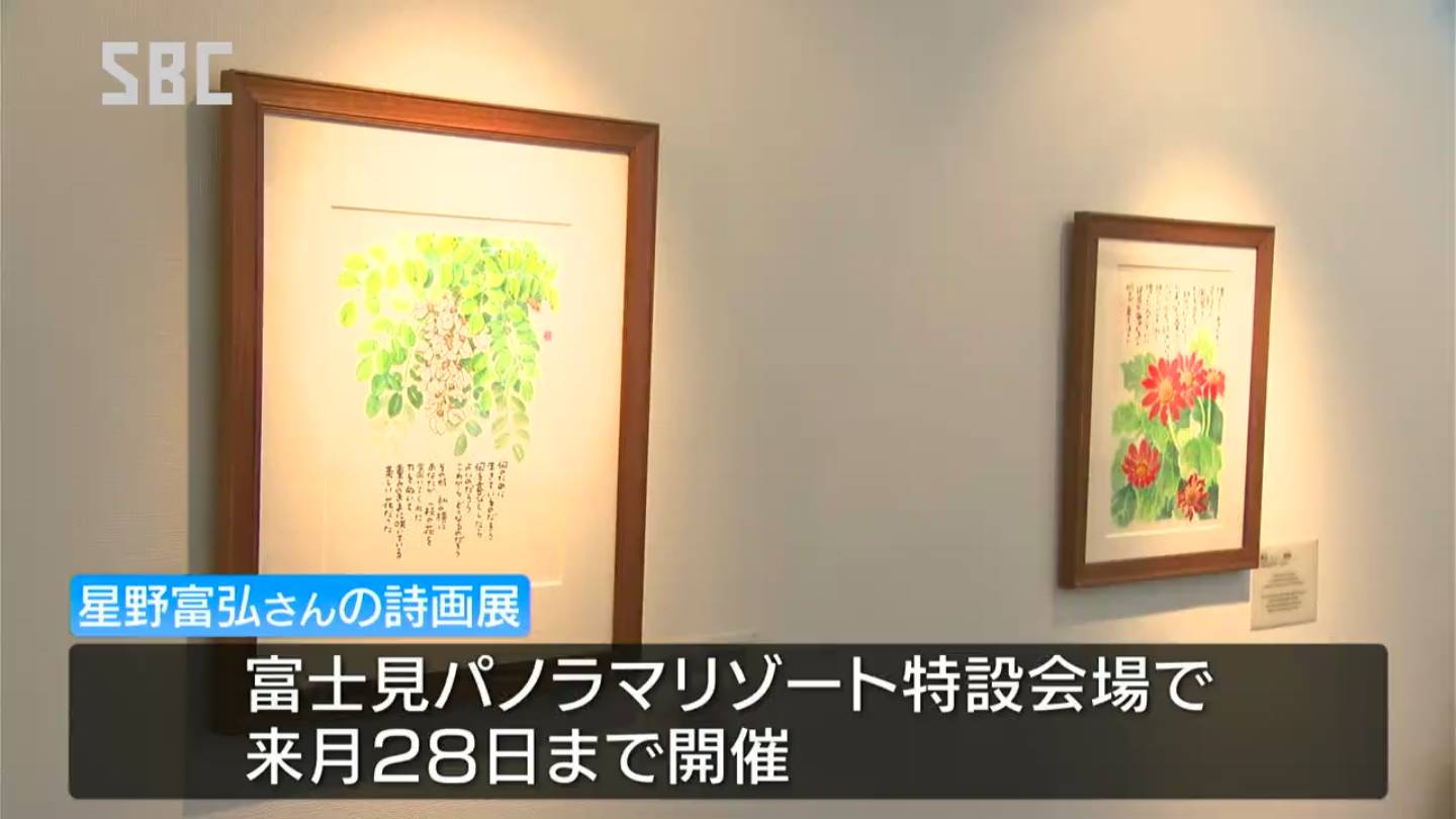 また、特設会場では、星野富弘(ほしの・とみひろ)さんの詩画展も始まっていて、手足の自由を失いながら口に筆をくわえて描かれた四季折々の作品が5月28日まで飾られています。