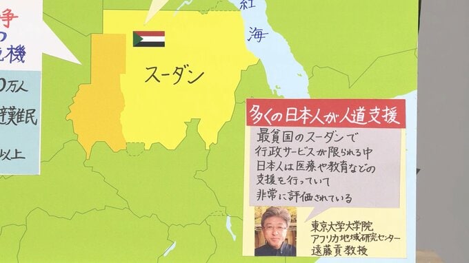 現地の情勢に詳しい東京大学大学院アフリカ地域研究センターの遠藤貢教授は「最貧国のスーダンで、行政サービスが限られる中、日本人は医療や教育などの支援を行っていて非常に評価されている」と話しています。