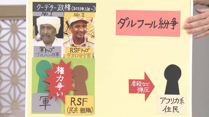 内戦が激化しているスーダンに残る日本人を退避させるため、自衛隊機が中継拠点のジブチへ派遣されました。そもそもスーダンの内戦の構図とは?そして、戦闘が続く中で自衛隊はどのようにして現地の日本人を救出することができるのでしょうか?今回、自衛隊の歴史上初めてとなる他国の領土での「陸上輸送」を含む救出活動が行われる可能性もあります。自衛隊トップの統合幕僚長を務めた河野さんは「非常に高いハードル」があると指摘するその任務とは?手作り解説でお伝えします。