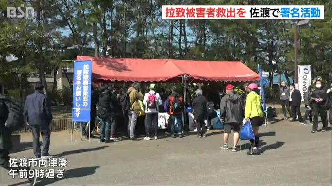 拉致被害者の曽我ひとみさんが23日、佐渡市で署名活動を行い、拉致問題解決に向け協力を呼び掛けました。
