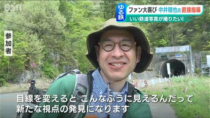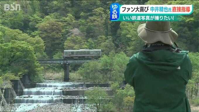 24日は県内外から11人が参加し、新緑の中を走る鉄道の撮影や中井さんとの交流を楽しんでいました。