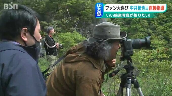 中井精也さんの写真教室は全国を巡る写真展に合わせて開かれていて、今回は糸魚川市の大糸線などが舞台となりました。中井さんおすすめの撮影ポイントで、構図の作り方などアドバイスを受けながら撮影します。