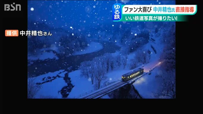 「1日1鉄!」のブログなどで知られ、ローカル線を巡り、四季折々の風景と鉄道の魅力をカメラにおさめる鉄道写真家の中井精也さんによる写真教室が24日に開かれ、県内外のファンが写真のコツを学びました。