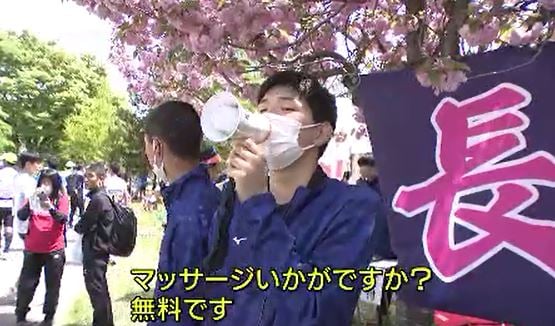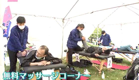 走り終わったランナーに、無料でマッサージを施しているのは、長野日大高校の生徒たち。