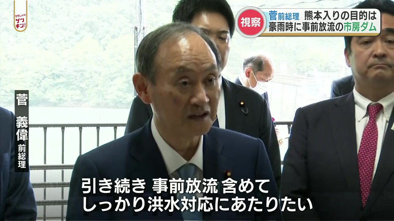 菅 前総理「事前放流についてもその重要性を確認できました。これから梅雨を迎えるにあたり、全国ダムにおいて引き続き事前放流を含めて、しっかり洪水対応にあたりたい」