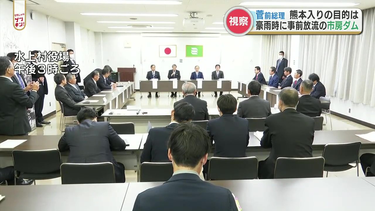 また、菅 前総理は水上村で蒲島知事や球磨川流域の市町村長と面会した後、市房ダムに移動し、県の担当者から2020年の豪雨や去年の台風14号の時に市房ダムで事前放流したことで被害を軽減できたと説明を受けました。