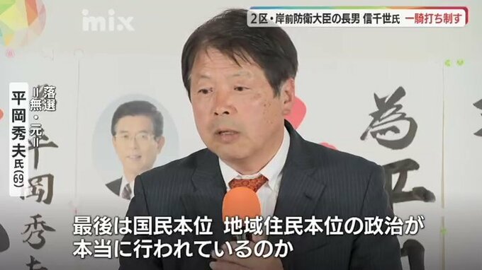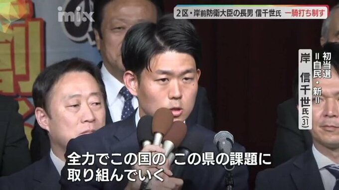 岸さんは、岸前防衛大臣の長男で、民放テレビ局に勤務し、その後、父親の秘書を務めました。安全保障や人口減少問題に取り組みたいと訴え、自民党の組織力を生かした選挙戦を展開し、組織票をまとめました。