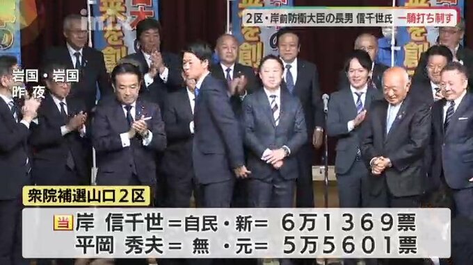 23日、衆院山口2区補欠選挙で、前防衛大臣の長男で、自民党公認・新人の岸信千世さんが初当選しました。
