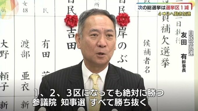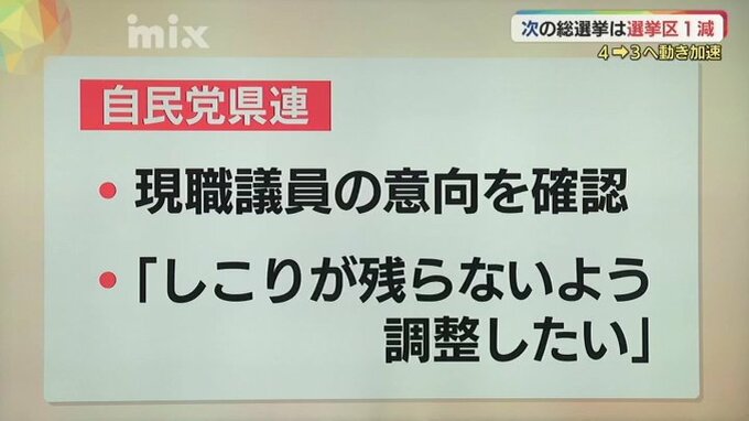 「4が3になりますから、そういった意味でいけばこれまで以上に厳しい選挙区…中でも争いもいろいろあろうという風に思いますけれども、県連としては1人でも候補をしっかり立てて戦いたいと思っています」