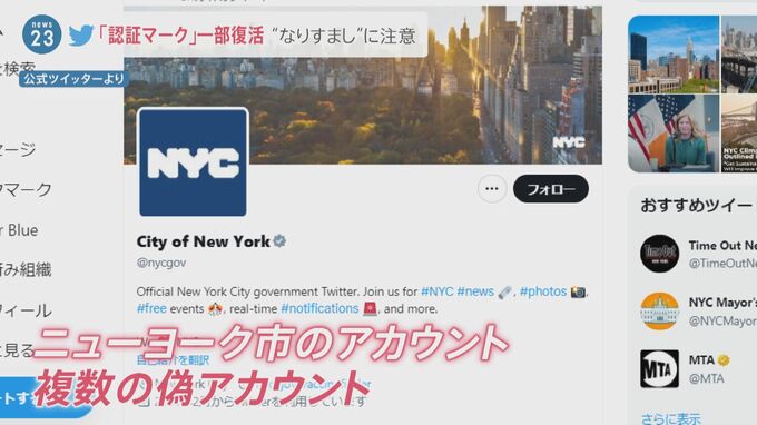 アメリカではすでに混乱が。一時、「認証マーク」が削除されたニューヨーク市の公式アカウントでは、偽アカウントが複数現れました。