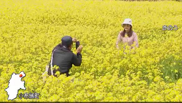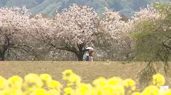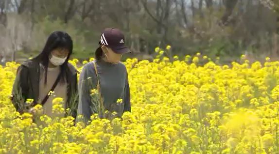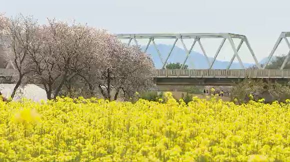 長野県小布施町にある千曲川沿いの公園では菜の花が見頃を迎えています。