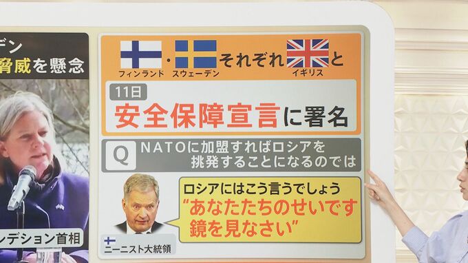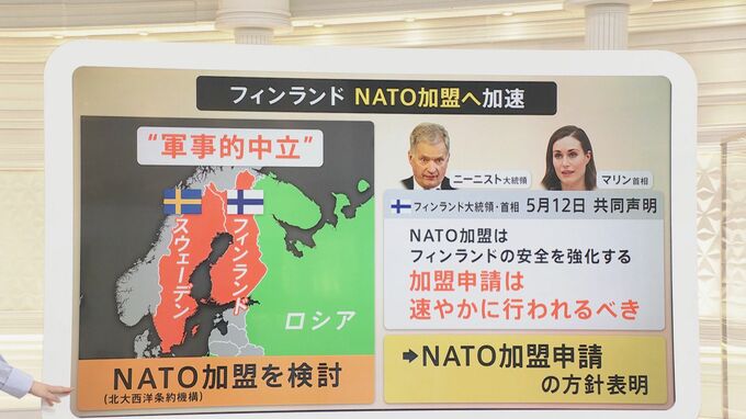 ロシアによるウクライナへの侵攻が続く中、“軍事的中立”としてきたフィンランドがNATO=北大西洋条約機構への加盟申請を行う方針を表明しました。これに対し、ロシア側は「対抗措置を取らざるを得なくなる」とけん制するなど、緊張が高まっています。NATO加盟に向けたプロセスなど専門家の分析を交え、解説します。