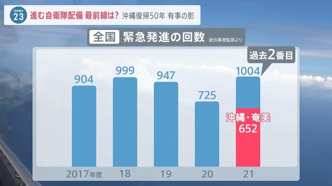統合幕僚監部によると、2021年度の緊急発進の回数は、▼全国で1004回と過去2番目の多さ。中でも、沖縄からの出動は6割以上を占めます。原因は・・・