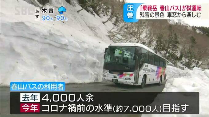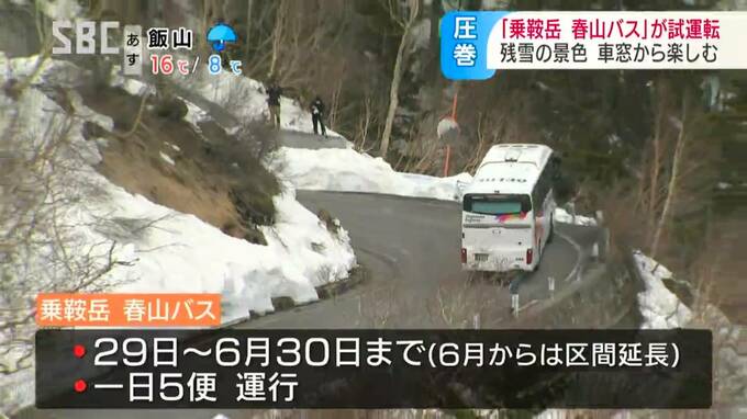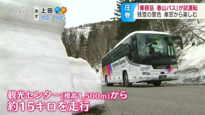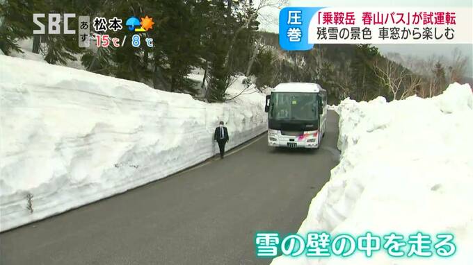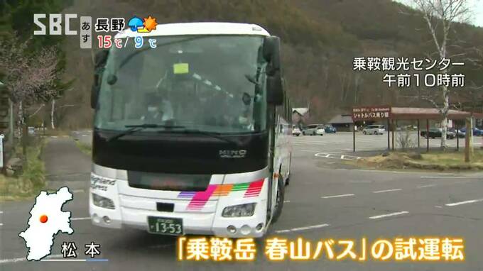 長野県松本市では、29日から運行する「乗鞍岳(のりくらだけ)春山(はるやま)バス」の試運転が、25日に行われました。