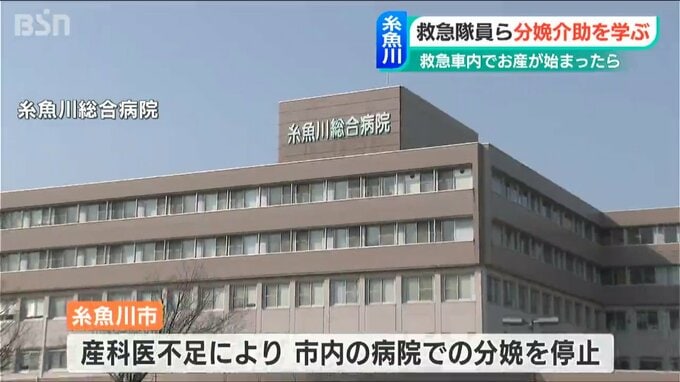 産婦人科医の不足により病院での分娩を停止している新潟県糸魚川市で、消防隊員を対象とした分娩介助の実技研修が行われました。