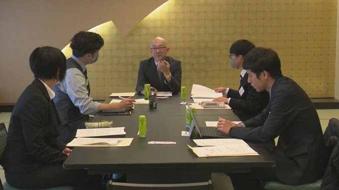 私立の新任教員を対象にした研修会が開かれ、働き始めて感じた悩みなどを意見交換しました。グループワークでの意見交換:「生徒が4人いて、2人に仕事を与えるとしたらどうやって決める?適任の人にやらせるだけで…