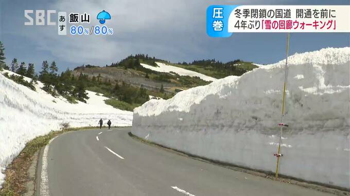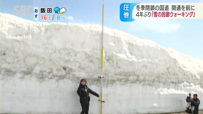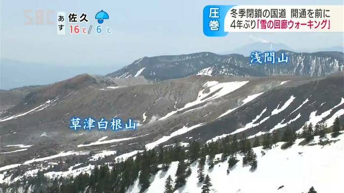 (井上怜記者)「志賀草津高原ルートといえばこの高い雪の壁今年は雪が少なめということですが高さ4メートルほどにまで積もっています」