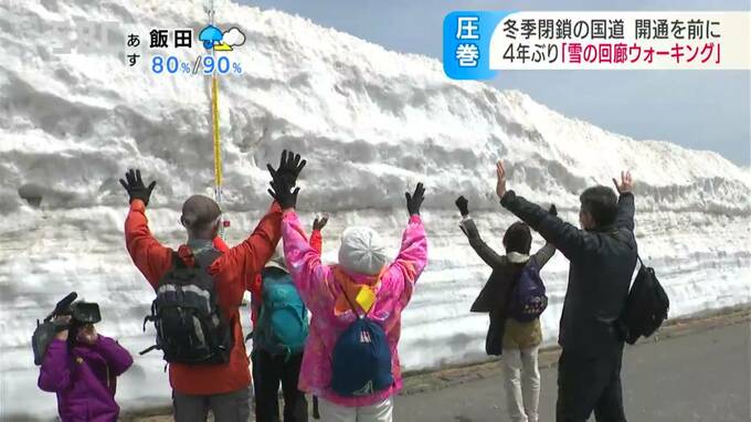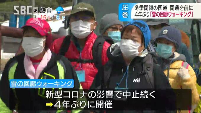 開通を前に歩いて巡る「雪の回廊ウォーキング」は、新型コロナの影響で中止が続いていましたが、2023年は4年ぶりに開催されました。